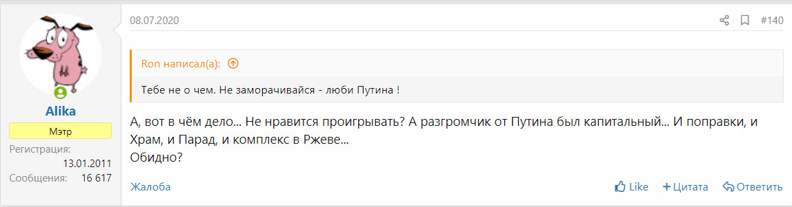 А разгромчик от Путина был капитальный... И поправки, и Храм, и Парад, и комплекс в Ржеве... Обидно?©Alika :facepalm: