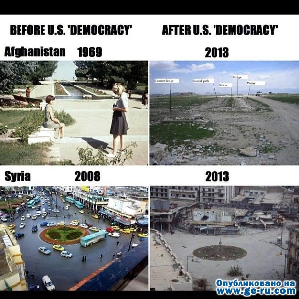 А нижние снимки наглядно показывают, что натворил Асад. И непонятно, причем тут after US democracy в Сирии, когда там американцев и не было?