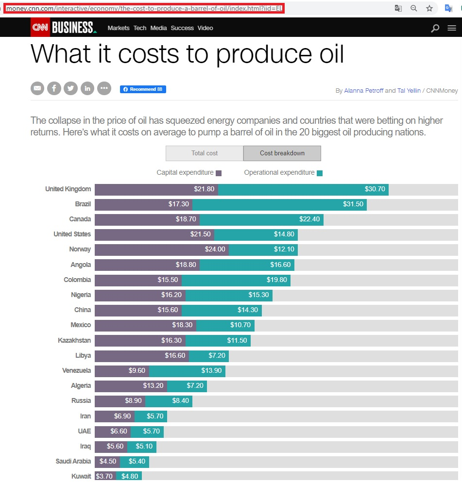 А целые ССЫНЫНЫ: Себестоимость нефтедобычи (capital+operational) в России 16 баксов, на самом деле в районе 12-13.