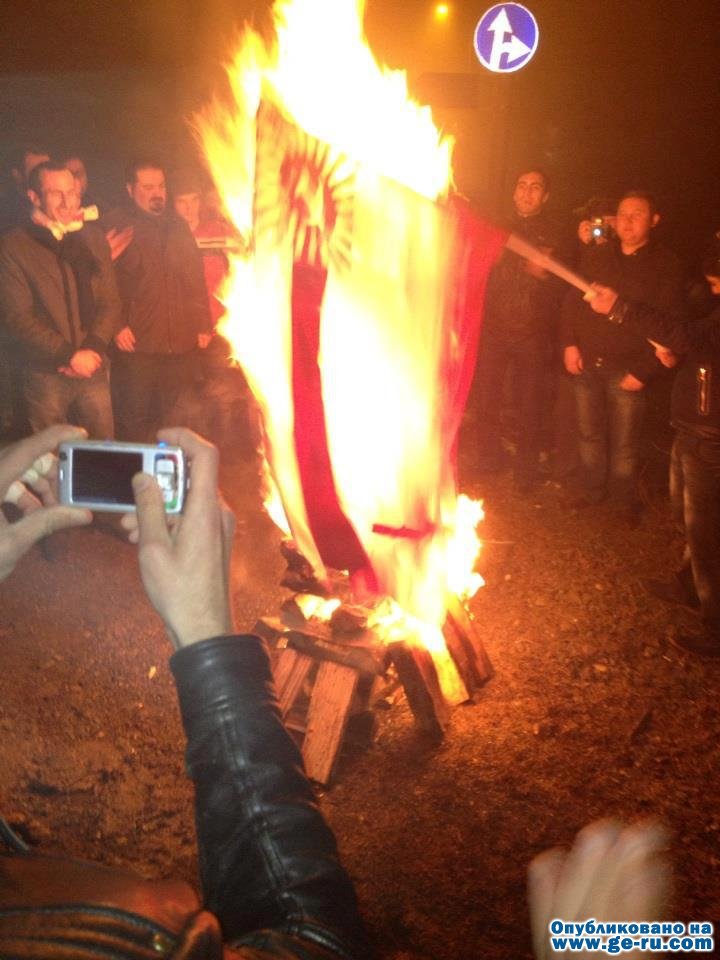 То что сожгли было флагом Грузии почти семьдесят лет. Что мы требуем от других, если сами так плюём на свою историю какая бы он не была.![]()