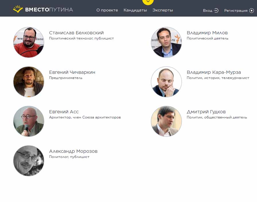 Интересно, а пошто енто Белковский на первом месте?«Каждый гражданин нашей страны может предложить в качестве кандидата в президенты того, кому мог бы доверить свое будущее.»