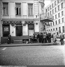 Итак : подвальное помещение (но Киса и там исхитрился обнаружить "второй этаж"), оттого в народе "Яма", более всего напоминающее пивняк из "Берегись автомобиля" стой разницей, что без официанток и сидячих столиков. Обычная "автопоилка" с пивными автоматами. Посреди зала высокие столики (стоячие), по стенам стойки. Из закусок - мелкая тихоокеанская креветка (ну помните... такая... с треть мизинца) и соленые сушки "сладкий сон дантиста". Контингент - волосатые обдолбанные чудовища в заклепках на дермантине и "казаках", переделанных из солдатских керзачей - место облюбовали "металлисты" из маргинальной их части (но Киса там и "писателей, художников и прокуроров" видел). Снаружи выглядело вот так :
