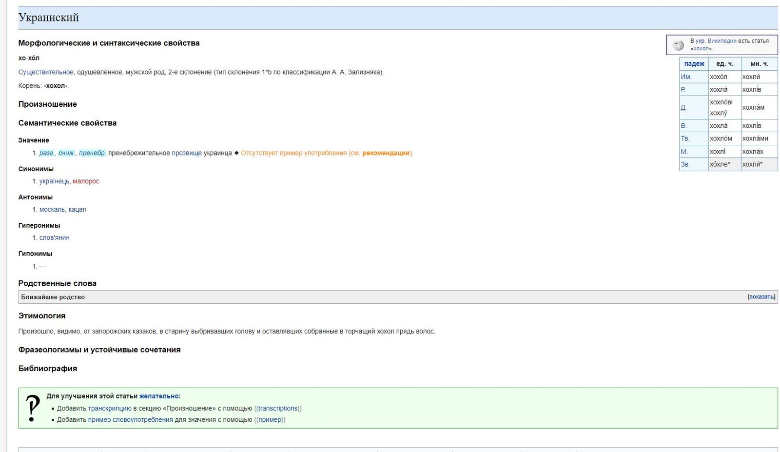 есть объяснение про прическу есть русская верся слова хохол и есть украинская.