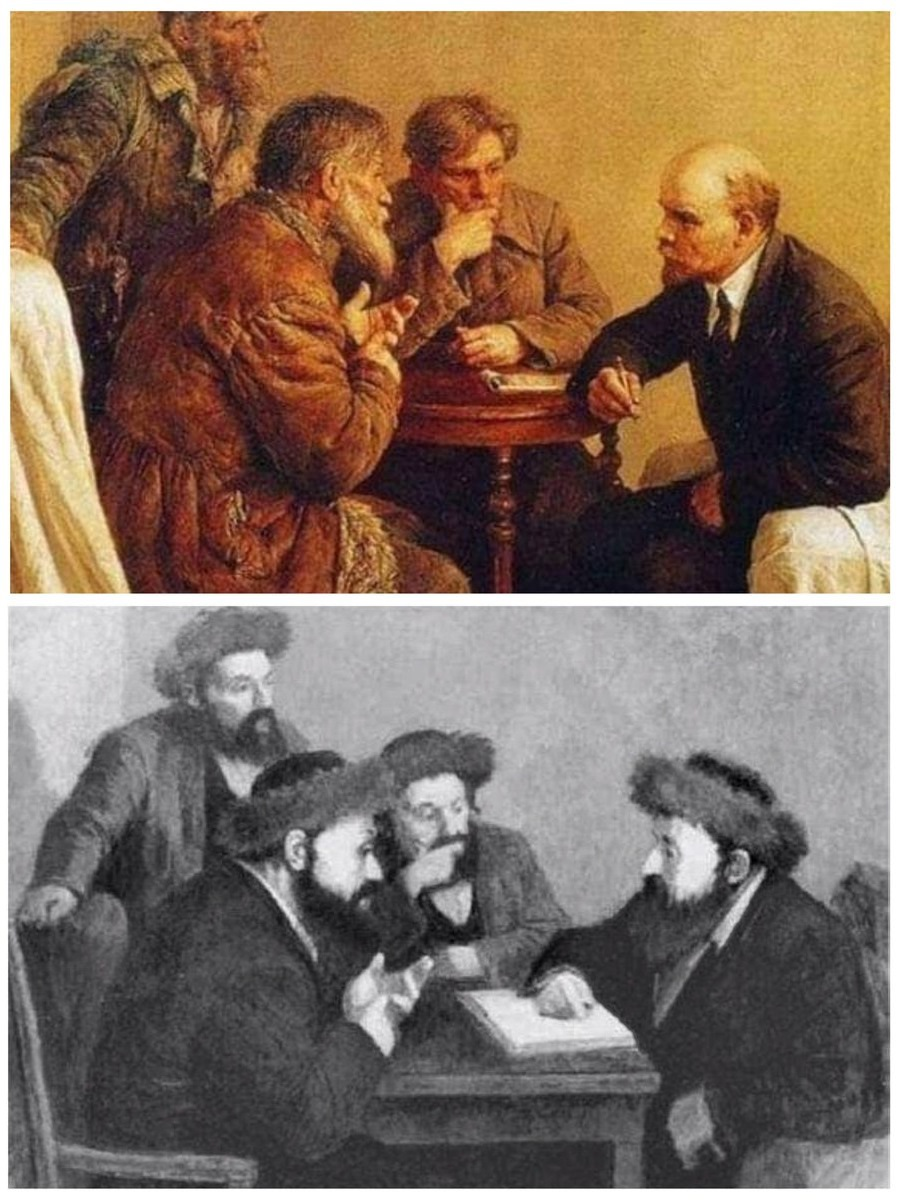 Одно дело у кого-то увидел и использовал как идею, даже как конкретный сюжет. Но тут у обоих художников совершенно точно совпадает все. Обрати внимание, что фундаментально совпадают не только сама композиция, но и все позы, а главное идеально совпало положение и сгибы кистей, пальцев всех рук. Столь вопиющая одинаковость не может быть просто эффектом каприза памяти. Мы имеем дело с плагиатом. И плагиатором по-моему является еврейский американский художник.