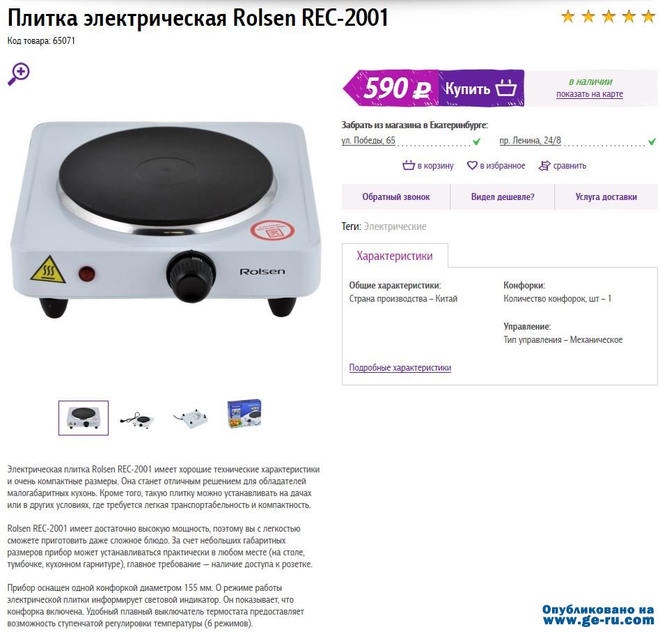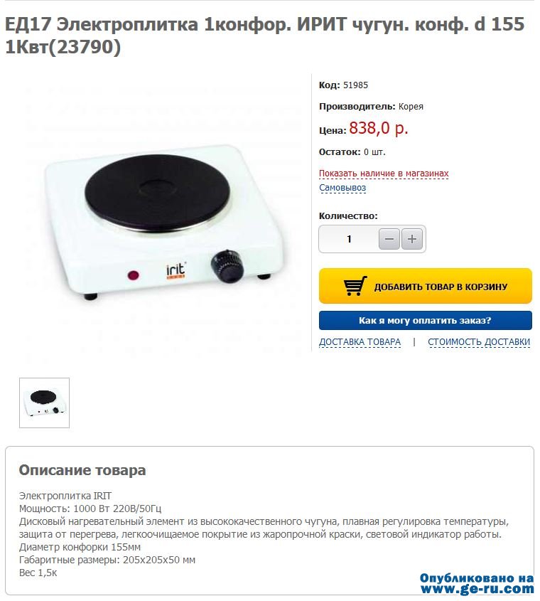 Однако аналогичная плита стоит ещё дешевле- всего 590 руб. Думаю, если поискать, то можно и дешевле купить.