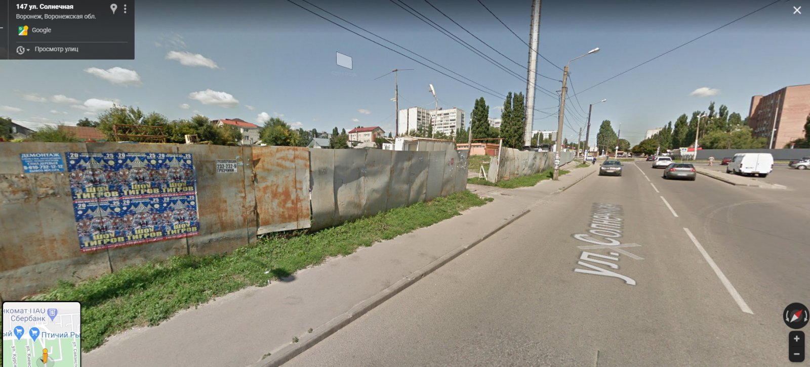 Я понимаю, тебе всё в нашей власти нравится, я вот сейчас наугад абсолютно ткнул в карту Воронежа, и сразу заметил, как у вас в городе всё замечательно, настолько, что и возмутиться-то нечем. Милые заборчики, милый газон вдоль заборчиков- всё просто отлично. Французы с немцами просто плачут навзрыд от зависти, настолько прекрасен Воронеж...
