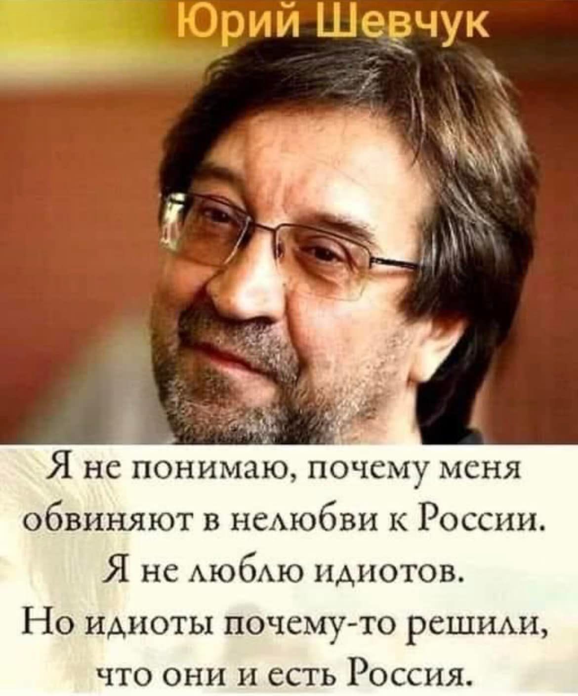 непонятно только почему Юра Шевчук считает себя не идиотом. Как раз он то в эту категорию и входит..Присоединяюсь.